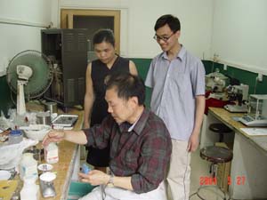 研究生陈林、覃月宁是就读不久的研究生。他们在2003年申请了一项发明专利《纳米复合氧化物粉末的复合络盐合成法》。“没有吴教授,单凭我们自己的能力是做不出这项成果的,但在署名时,吴教授却坚持把我们的名字署在前面。”陈林、覃月宁在接受记者采访时说。
