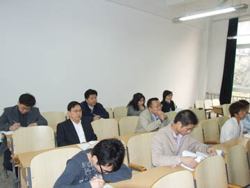 李祥清副院长(后排左一)与相关部门负责人在认真听课