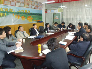 赵艳林院长(左二)与相关部门负责人在认真听课