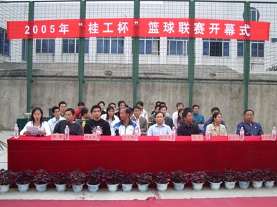 2005年10月26日下午,由学院体育教学部主办、桂林工学院学生会承办的2005年度“桂工杯”篮球联赛在学院新建篮球场隆重举行。学院党委唐善茂副书记、学工处梁军处长、体育教学部冯玉斌主任、体育教学部直属支部魏建军书记、学院团委陶剑飞副书记,以及各系院分团委书记应邀出席了开幕式现场。