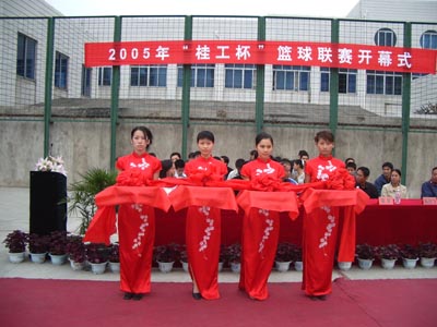 热烈气氛中,唐善茂副书记、学工处梁军处长、冯玉斌主任进行了大赛的剪彩仪式,宣告桂林工学院2005年“桂工杯”篮球联赛开幕仪式的圆满结束。