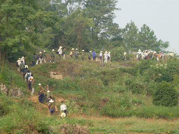9月8日至9月10日,在迎来第21个教师节的前夕,阮百尧副院长率领资环系柯天海、张桂林,教务处崔建明、李德明、谢丽婵等一行6人,前往湖南黄沙坪铅锌矿实习基地、广西灌阳地质填图实习基地进行考察,代表学院亲切慰问了基地实习师生。考察期间,阮副院长一行通过与实习师生一道下矿井观摩和上山参与学生填图实习,具体了解了实习基地师生的工作情况。考察期间,阮副院长与湖南黄沙坪铅锌矿的领导就实习基地的共建、大学生就业等问题进行了广泛地沟通和交流,双方本着精诚合作、互相支持的态度交换意见,不仅加深了共建双方的情谊,而且还就支持本院大学生毕业后参与黄沙坪铅锌矿建设等有关事宜达成共识。 9月8日傍晚,阮副院长等一行驱车600余公里,赶到黄沙坪铅锌矿实习基地。一到实习基地,阮副院长不顾疲劳,未作休息,即刻到师生驻地看望实习师生,了解实习工作状况。阮副院长与实习师生亲切交谈,问寒问暖,并逐一查看了实习师生的宿舍,对他们的辛劳表示慰问。随后,会见了黄沙坪铅锌矿的相关领导,与矿领导交换意见,互致问候。 黄沙坪铅锌矿位于湘东南的郴州地区桂阳县境内,是我国著名的大型铅锌矿之一,也是我院建立较早的一个资勘专业实习基地,早在1992年我院资源勘查工程专业就开始在该矿进行生产实习和毕业实习,一直得到矿领导的大力支持,保障了实习工作的顺利完成。对此,学院领导向黄沙坪铅锌矿各位领导表达了深切的谢意。黄沙坪铅锌矿廖副矿长、徐副矿长、人教部白主任和矿务部肖主任对我院师生在实习期间的工作及表现,给予了高度的评价,并真诚的盼望我院的毕业生能到黄沙坪铅锌矿工作,展露才华,其求贤若渴的诚意令人感动。 这次黄沙坪实习队共有4位老师和42位学生,在实习队长宋慈安老师的带领下,整个实习工作开展得有条不紊,富有生气,师生关系融洽,得到学院领导的高度赞许。他们在实习基地建立了临时党支部,结合实习工作开展保持共产党员先进性教育活动,办起了黑板报。“用心去做对的事,努力干好每一天”的对联书写在黑板报两侧,也成为实习队的座右铭;他们的实习进程安排得井井有条,组织管理工作严密,每天的实习任务目的明确;他们利用空余时间,开展形式多样的文体活动,给偏远的矿区带来了活力,展示了大学生朝气蓬勃的风采。 闻讯学院领导要到实习基地探望师生,黄沙坪实习队备受鼓舞,精心组织了一台联欢晚会。9月8日晚,阮百尧副院长及矿领导来到晚会现场,受到师生热烈欢迎。在阮副院长、廖副矿长等领导一番热情洋溢的讲话后,晚会在一片欢声笑语中进行。虽然条件较为简陋,但气氛十分欢跃。阮副院长与廖副矿长合作表演了猜词秀,宋慈安老师表演了口琴独奏,矿山矿务部肖主任一篇饱含激情的诗朗诵、师生们一首首动人的演唱,都赢得晚会一阵阵热烈的掌声。 9日清晨,阮副院长一行来到黄沙坪铅锌矿窿口,与实习队师生一道进入矿区坑道,深入现场,了解实习状况。 当晚,阮副院长一行即驱车赶到了广西灌阳,看望正在那里开展地质填图实习的师生。这次在灌阳实习基地开展生产实习的有4名指导教师,实习学生60余人。 阮副院长一行一到灌阳,稍事休息,即来到灌阳实习队组织的庆祝教师节联欢晚会现场。 晚会上,阮副院长结合自己的经历及勘技专业的特点,谈了地质工作的重要性,勉励同学们继续发扬吃苦耐劳的精神,珍惜实践教学的机会,取得丰硕的成果。随后,同学们用一首首歌声与老师们共庆教师节,阮副院长一行与实习队的老师们共同高歌一曲《勘探队员之歌》,充满豪迈激情的歌声将联欢晚会推向了高潮。 10日清晨,阮副院长一行与实习队师生一道出发,登山越岭,前往地质添图实习基地。在现场看到同学们认真听讲,相互探讨,仔细观察地质现象,感到十分欣慰。随后,在资环系副主任张桂林的带领下,阮副院长一行实地考察了具有丰富地质特征的灌阳实习基地,对资环系加强野外实习工作,注重实践教学环节的情况有了更深入具体的了解。 考察期间,阮副院长与教务处和资环系分管实践教学工作的同志认真分析和研究目前我院实践教学环节的工作情况和不足,并就如何加强实践教学环节工作、努力提高学生实际工作能力和培养学生创新精神作了重要指示。他说:“要保持学院重视实践教学环节的传统,以培养大学生生产实践能力和创新精神为目标,着力加强实习基地建设和实习教学环节的管理。特别是在教学经费投入上,要给予充分保障,要根据物价上涨因素和实习实验具体情况进行测算,对学院实践教学环节经费投入进行适当调整和增加。在经费的管理和分配上,要根据学院不同专业、不同学科的需求,予以区别对待,既要本着事实求实原则,从教学需求出发,确保完成教学计划,又要对实习实验经费的使用严格管理,决不允许滥用,将实习实验经费用于其他不相干的开支。”