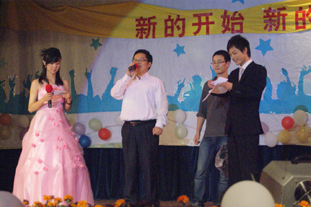 10月22日晚,2010年研究生迎新晚会在屏风校区礼堂隆重举行,学校吴志强副校长,学工处、研究生处、校团委及各学院主管研究生教育领导与2010级研究生一起观看了晚会。 吴志强副校长代表学校欢迎广大莘莘学子到桂理工这个大家庭读书深造,并简要介绍了学校学位与研究生教育情况,希望大家在读研期间学习、生活都取得进步。 晚会在《溜溜的康定》的欢快舞蹈中开始,来自各学院的研究生通过独唱、小合唱、舞台剧等丰富多彩的节目形式展示了他们的精神风采,精彩的节目不时赢得了观众的阵阵掌声。今年也是我校MBA学位点首年招生。为参加迎新晚会,MBA学员们积极排练。来自台湾的MBA学员陆华瑄等还与大陆学员一起朗诵配乐诗《台湾,我多想触摸你》。深情的语句、真挚的感情道出两岸同胞“我们本是血肉相连”的心声,打动了现场的每一位观众,纷纷为他们的精彩演出报以热烈掌声。 晚会在合唱《相亲相爱的一家人》的动人旋律中结束。