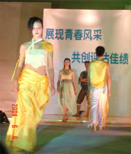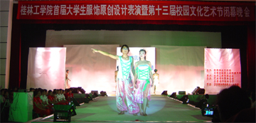为传承,弘扬中国源远流长的服饰传统文化,引领服饰时尚潮流,展现桂工学子与时俱进,风格独特的设计理念,表达桂工学子的积极向上,朝气蓬勃的青春心语,营造良好的文化氛围,打造具有桂工特色的校园文化活动经典品牌。于6月6日晚7:30,第十三届校园文化艺术节闭幕式颁奖晚会及“爱我桂工,爱在桂工”服饰原创设计汇演在体育馆三楼隆重举行。院团委领导,各系院党总支书记副书记,分团委书记副书记,学生会代表及桂林市各大高校有关人士作为嘉宾出席了此次晚会。 晚上,当舞台序幕拉开的时候,现场近千名观众的热情被劲暴的音乐节奏、绚丽的灯光和五位街舞小伙子的动感亮相点燃了,整场服装展示共分四个乐章,既有优雅而轻松的休闲装,又有随意而自由的运动服,既有平静而高贵的晚装,又有庄重而潇洒的西装,模特们用他们的肢体语言和面部表情来展现他们对美的理解和诠释,令在场的观众深深折服。 本次参展的一百多套服装均由学生自行设计,作品融合了56个民族的服饰文化,并结合现代服饰文化底蕴,以独特大胆的设计眼光和精美的服饰展出赢得了观众的阵阵掌声。特别是马丽老师设计的“朴朴风”民族风格服饰亮相,成为全场最大的亮点。 在精彩汇演的过程中,主持人不忘宣布在本次校园文化艺术节中表现突出的先进团体和个人,由院团委以及各系院的的老师为获奖者颁发了荣誉证书,并由院团委江云清老师发表讲话,为此次校园文化艺术节作了总结。 作为本次校园文化艺术节的尾声,这场晚会会聚了各方面的心血,艺术系学生会尽职尽责的组织工作,院团委老师的鼎立支持,以及服装,发型,摄影等单位的大力赞助,当然还有模特们一个多月来辛苦的排练,终于在夜色初降的体育馆T形舞台上发挥得淋漓尽致,光彩夺目。 此次晚会紧紧围绕我院迎评工作的主题,发挥桂工优良传统,展示大学生的真我风采,丰富了同学们的校园文化生活,培养了大学生的审美情趣和动手能力,更加充分调动同学们的积极性,创造性和主动性,为迎评奠定了扎实的基础。