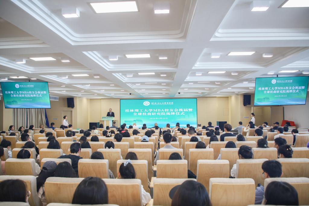 4月26日,桂林理工大学MBA校友会换届暨全球桂商研究院揭牌仪式在屏风校区7702报告厅举行。学校党委副书记、校长王敦球,党委常委、副校长曾繁荣出席活动。学校党委学生工作部、对外合作交流处、创新创业学院、研究生院、科技处、商学院相关负责人,行业产业实践导师代表、MBA校友代表及商学院师生代表250余人参加活动。