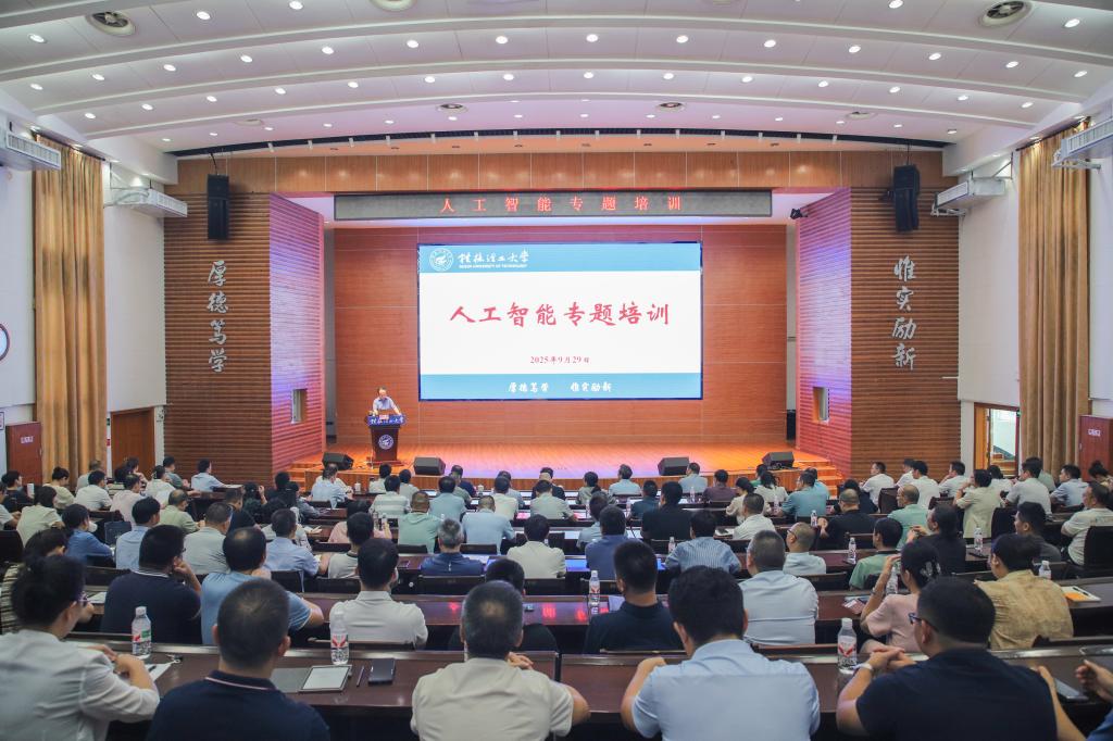 9月29日上午,学校在屏风校区图书馆报告厅开展人工智能专题培训,邀请深圳大学中国经济特区研究中心特聘教授、博士生导师、粤港澳大湾区新兴产业发展研究院院长龚晓峰现场讲授报告。校领导农毅、韦学敏、王磊、罗盛锋、唐壮东、曾繁荣,全体中层领导干部出席参加报告会。会议由校党委常委、副校长王磊主持。