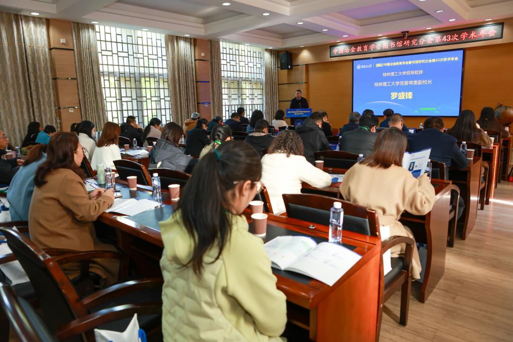 11月20日至21日,由中国冶金教育学会图书馆研究分会主办、我校承办的第43次学术年会在桂林召开。学校党委常委、副校长罗盛锋,中国冶金教育学会会长臧勇,图书馆研究分会理事长、东北大学图书馆馆长张国联出席开幕式并致辞。来自全国冶金相关行业高校图书馆的40余位代表齐聚一堂,共同探讨AI时代背景下高校图书馆发展的新路径。