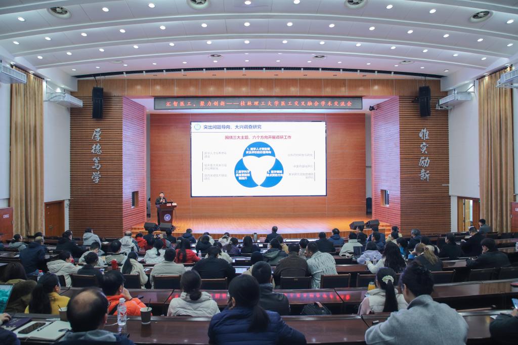 1月13日,“汇智医工,聚力创新——桂林理工大学医工交叉融合学术交流会”在屏风校区图书馆报告厅召开。学校党委副书记、统战部部长(兼)黎贞崇出席会议并讲话,广西中医药大学副校长肖健出席会议并作专题报告。中国人民解放军联勤保障部队第九二四医院、桂林市人民医院等医疗机构的专家代表,以及我校科技处、材料科学与工程学院、物理与电子信息学院、计算机科学与工程学院、数学与统计学院等相关单位负责人、科研骨干共100余人参加会议。