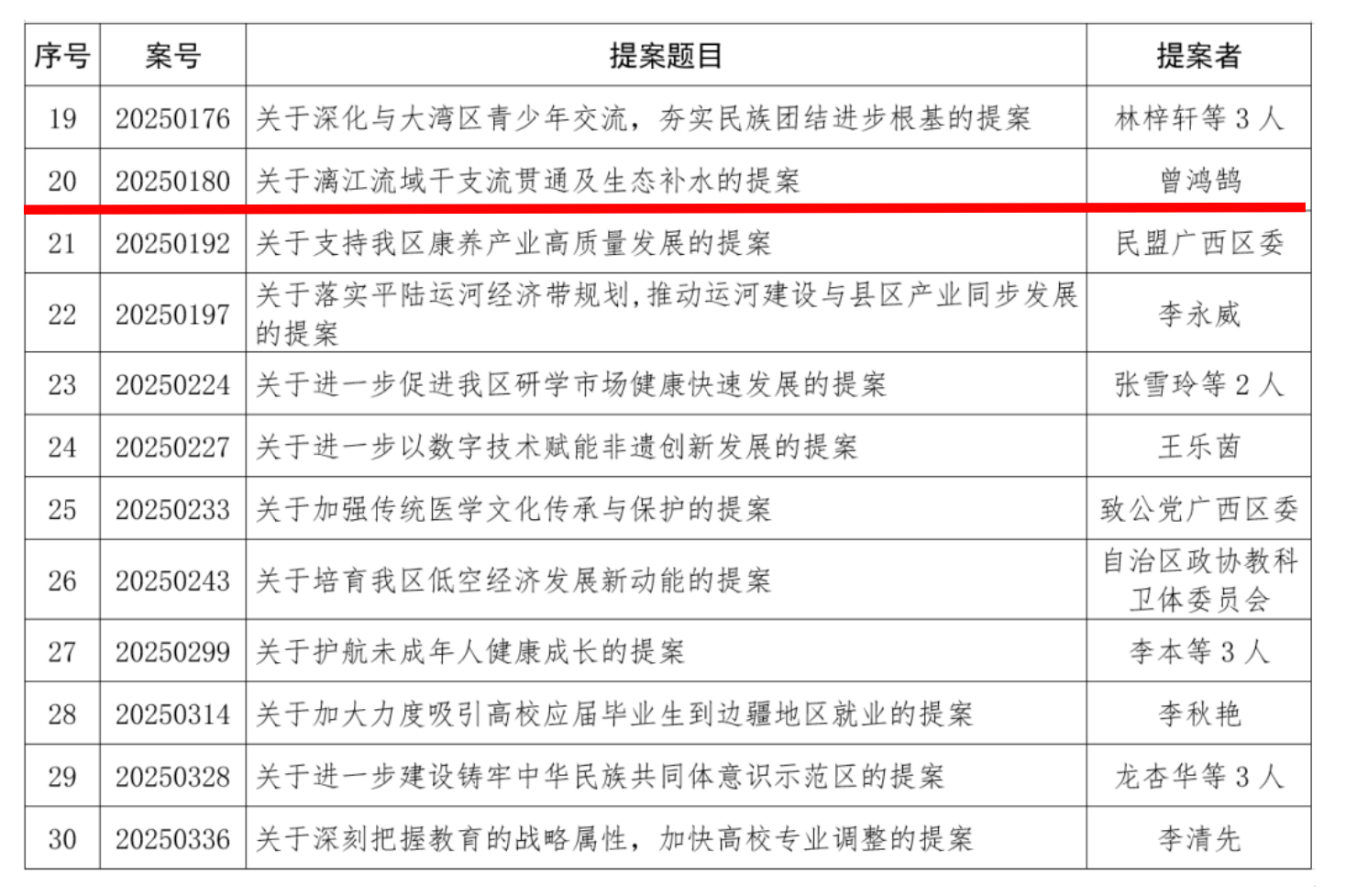 自治区政协2025年度好提案名单(部分)