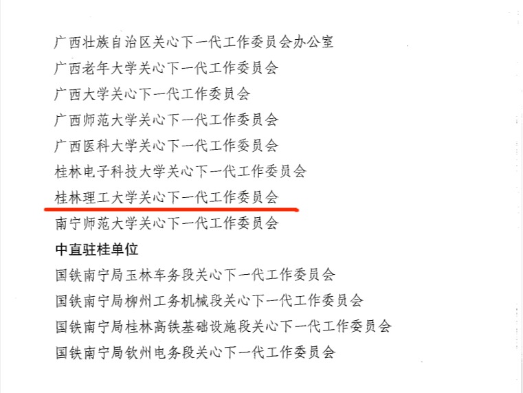 下一步,学校将持续紧扣立德树人根本任务,不断创新工作方法、拓展育人平台,团结凝聚更多力量参与关心下一代工作,全力抓实抓细固本工程、战略工程、基础工程、铸魂工程,精心打造一批彰显桂工特色、富有育人实效的关心下一代工作品牌,为培养担当民族复兴大任的时代新人贡献更大力量!