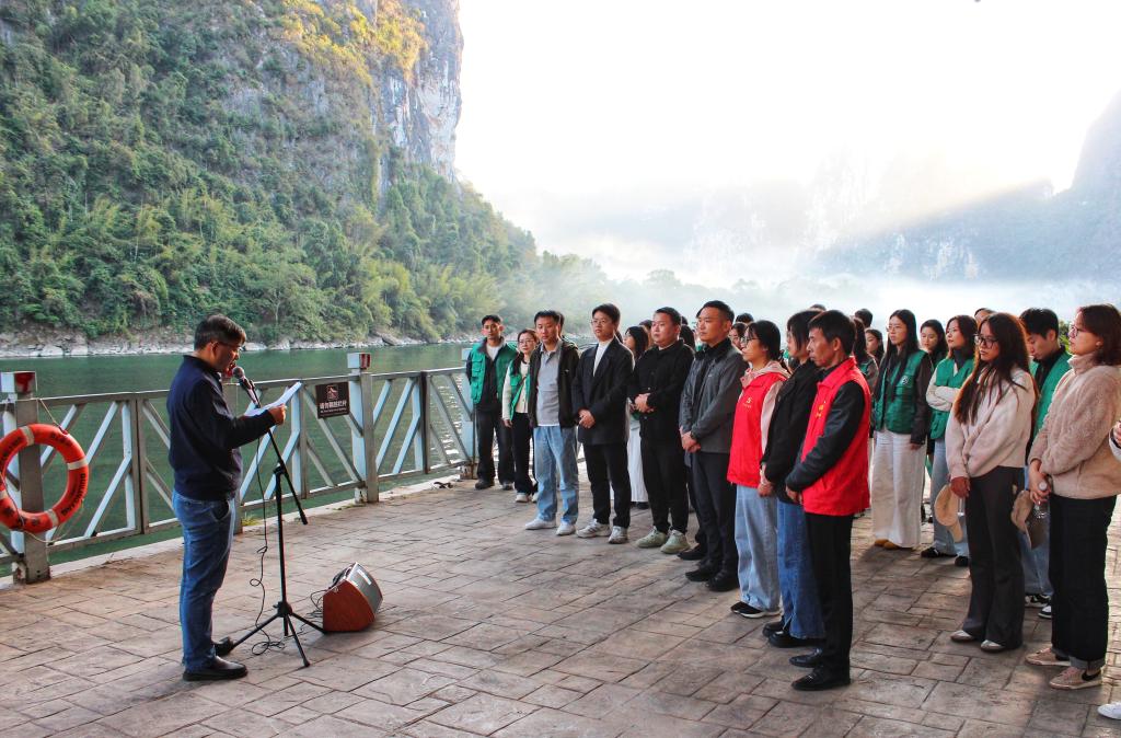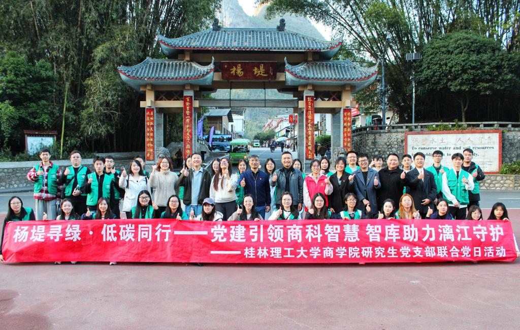 近日,桂林理工大学商学院研究生第一党支部、第二党支部、第三党支部赴桂林市阳朔县杨堤乡开展“杨堤寻绿·低碳同行——党建引领商科智慧,智库助力漓江守护”联合主题党日活动,副院长王兴中、各研究生党支部书记及师生党员代表40余人参加活动。