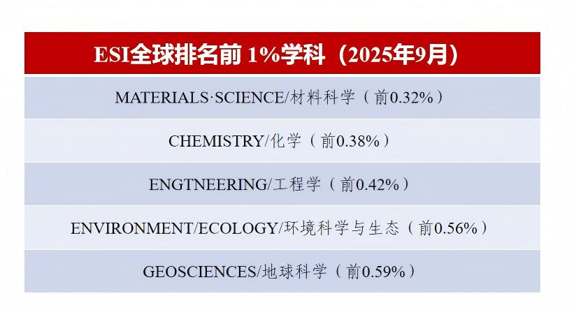 对标一流,推动学科建设拔尖筑峰。坚持内掘潜力、外显特色,全面提升学科整体实力和核心竞争力。在教育部第五轮学科评估中学科实现提档升级,优势学科覆盖面不断拓宽,学校ESI全球前1%学科数量增至5个:材料科学、化学、工程学、环境生态学、地球科学;化学工程、地球科学2个学科入选软科“国际一流学科榜”。召开冲击“双一流”优势学科论证会,聚焦学科特色将“资源与环境领域”学科确定为优势特色学科领域,全力冲击新一轮世界一流学科。