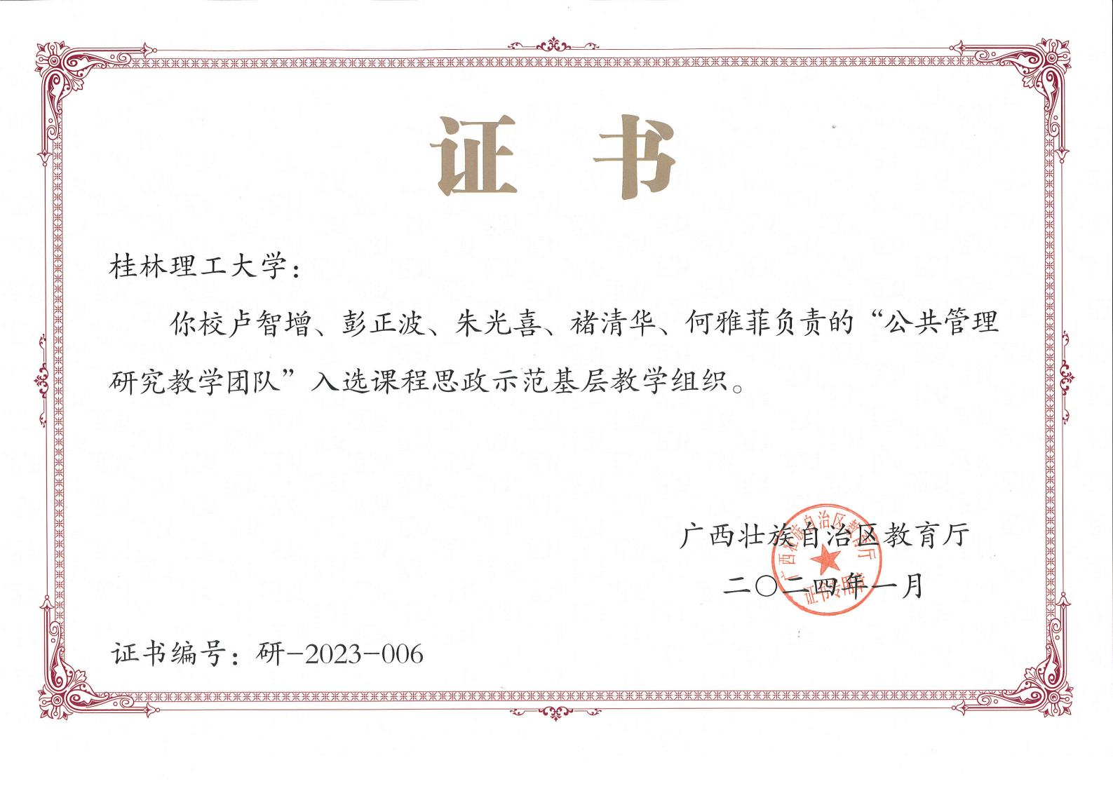 研究生课程建设亮点突出。2023年,研究生课程《现代成矿理论与勘查技术》获评自治区级课程思政示范课程,其负责人及团队获自治区级课程思政教学名师和团队认定,研究生公共管理研究教学团队被认定为自治区级课程思政示范基层教学组织。研究生联合培养基地提质扩面。与66家单位建立合作,建成23个区级、91个校级研究生联合培养基地;2023年,3个基地入选第一批广西示范性研究生联合培养基地。研究生教学成果等次实现新突破。我校作为第一完成单位,斩获自治区级研究生教学成果一等、二等等次各1项。研究生学科竞赛成果丰硕。五年来,学生获学科竞赛国家级一等奖60余项、二等奖150余项、三等奖220余项,省部级特等奖80余项、一等奖580余项、二等奖900余项、三等奖1100余项。