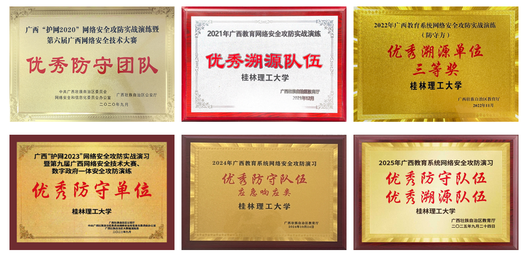 网络与信息中心以构建“智能、融合、高效、安全”的智慧校园为目标,持续夯实基础设施与网络安全体系。一是夯实网络基础。 建成双核心双链路冗余网络,完成两校区93栋楼宇网络改造,部署无线AP超9000个、有线信息点超17000个,校园有线网络覆盖率100%,Wi-Fi6信号实现室内全面覆盖,构建“万兆到楼、千兆到桌面”的高速网络体系。二是筑牢安全防线。 构建“三防一体”网络安全体系,部署下一代防火墙、态势感知等系统,连续六年在“广西护网行动”中获“优秀防守单位”“优秀溯源单位”称号。2023年入选广西“智慧校园示范校”建设单位,2024年正式获批“广西网络安全人才培养基地”。三是拓展智能应用。 2025年部署AI智能体广场,上线“桂工DeepSeek”“智慧教室服务中心”“桂工新闻速览”“一网通办助手”等智能应用,推动人工智能在教学、管理、服务中的深度融合。