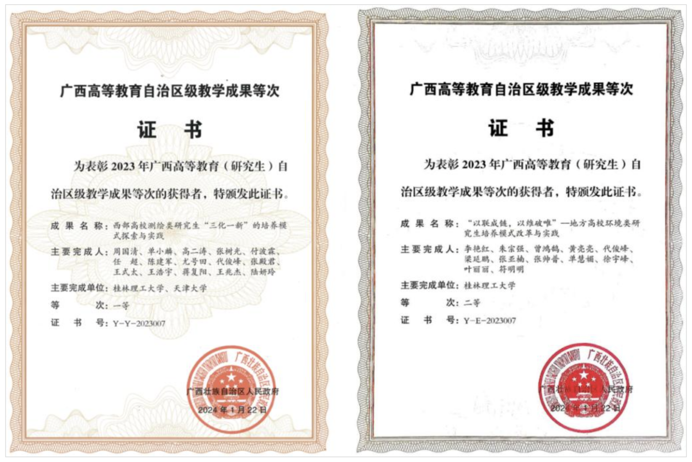 研究生教育高质量发展,博士招生总量翻番,2025年新增专业学位博士招生,实现学术型与专业型并驾齐驱的“双轨并行”;硕士招生规模扩大一倍,非全日制录取人数同步翻倍,形成全日制与非全日制协调发展的“双轮驱动”。五年来,年招生总量由2018人(博士47人,硕士1971人)增至2464人(博士99人,硕士2365人),研究生教育迈入规模化、多元化发展新阶段。研究生课程建设亮点突出,《现代成矿理论与勘查技术》获评自治区级课程思政示范课程,公共管理研究教学团队被认定为自治区级课程思政示范基层教学组织。与66家单位建立合作,建成23个区级、91个校级研究生联合培养基地,3个基地入选第一批广西示范性研究生联合培养基地。研究生教学成果等次实现新突破,斩获自治区级研究生教学成果一等、二等等次各1项,学生获学科竞赛国家级一等奖60余项、二等奖150余项、三等奖220余项,省部级特等奖80余项、一等奖580余项,育人成效显著。