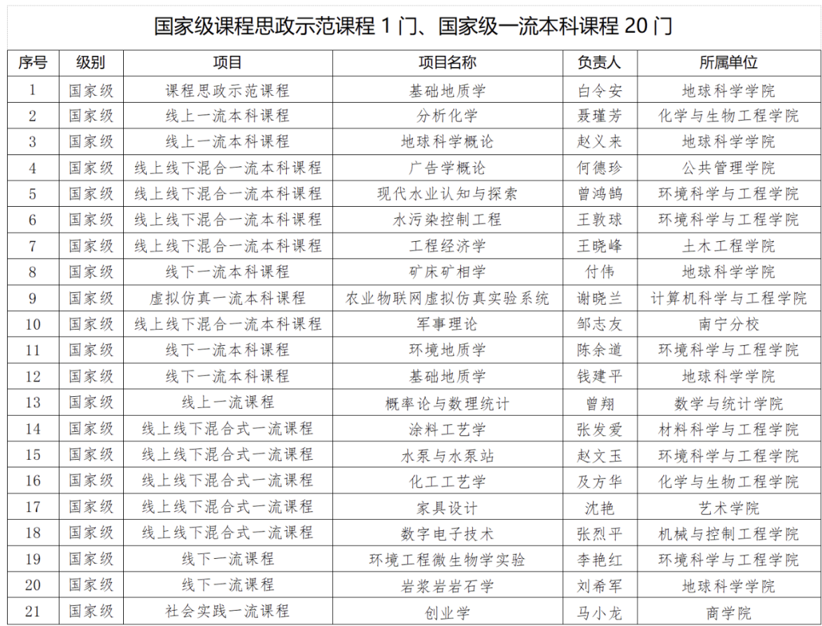 获批国家级课程思政示范课程1门、国家级一流本科课程20门