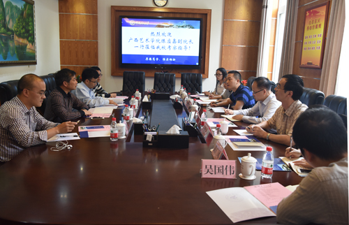 10月17日下午,广西艺术学院陈应鑫副院长率该校研究生处、科研创作处、建筑艺术学院、申博办等部门一行7人来访我校。陈学军副校长在屏风校区第二会议室热情接待了来访客人。 在观看了我校宣传片后,陈学军副校长简要介绍了我校校情校史,并重点回顾了学校一级学科博士点建设的整体情况。我校研究生院相关负责人就学校三个一级学科博士点的立项建设总体思路、建设措施、建设成就、标志性成果、建设效果评价等情况进行回顾,并就当前博士生培养情况进行了介绍。双方围绕申请博士点一级学科的做法与经验进行了深入交流。
