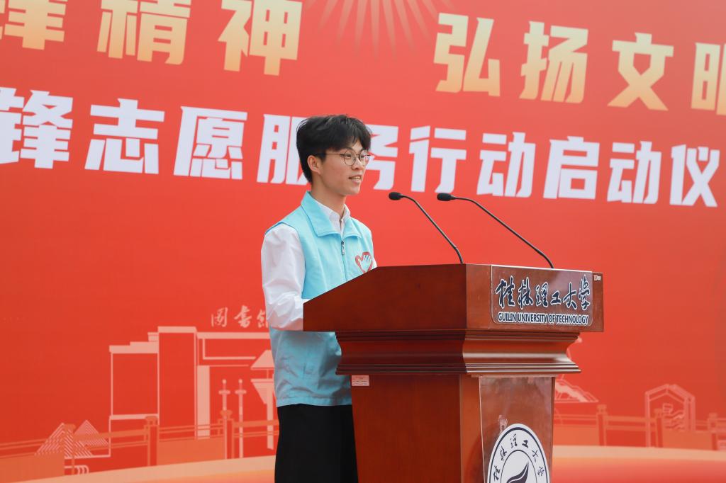 启动仪式上,唐壮东、叶昊、邱杰分别为学校和各二级学院大学生青年志愿者服务队授旗;学校青年志愿者代表、第25届研究生支教团志愿者李家松发出学雷锋志愿服务倡议,并带领全体志愿者进行宣誓;学校团委和雁山区团委签订了实施“大学生社区实践计划”协议。启动仪式后,学校举行了“生命延续 奉献爱心”无偿献血等12个志愿服务同期活动。
