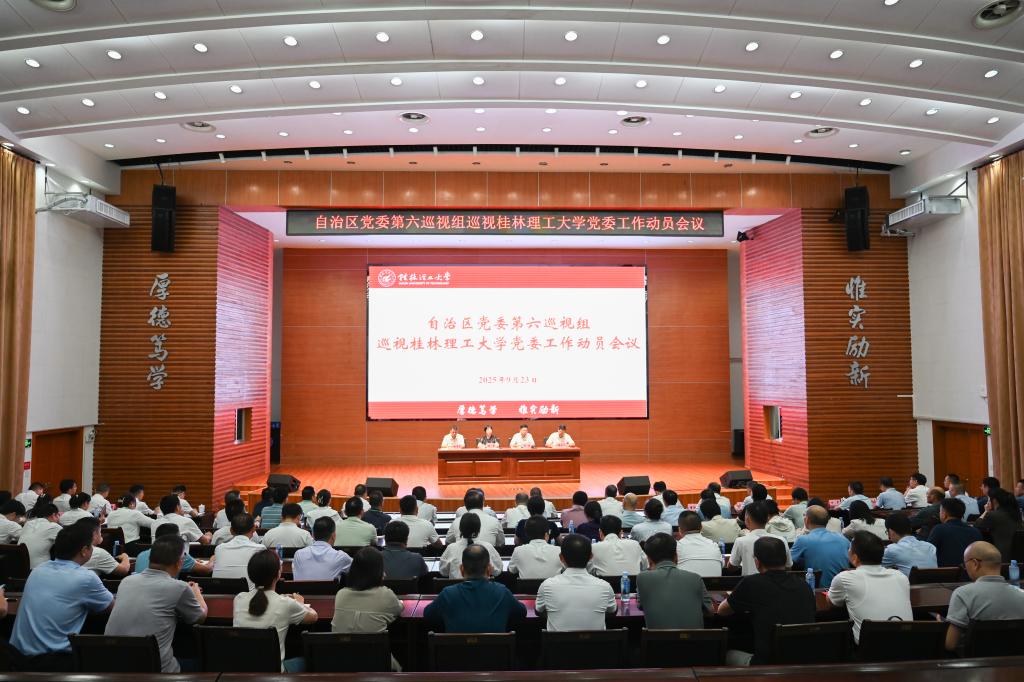 根据自治区党委统一部署,2025年9月23日上午,十二届自治区党委第八轮巡视第六巡视组巡视桂林理工大学党委工作动员会召开。自治区党委第六巡视组组长唐青受自治区党委巡视工作领导小组委托,就深入学习贯彻习近平总书记重要讲话精神,自觉接受巡视监督,支持配合本轮巡视工作提出明确要求,并通报本轮巡视的主要任务和工作安排。桂林理工大学党委书记农毅主持会议并作表态发言。