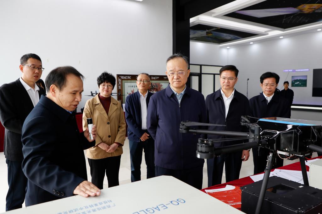 黄俊华一行先后实地考察了我校广西隐伏金属矿产勘查重点实验室和国家级创新创业实践基地——空间智能科创中心,详细了解学校在关键金属矿产勘查领域的研究进展与成果,听取了学校自主研发的水深激光雷达、地听天算—AI驱动的三维地理大模型及治理中枢和平陆运河雨水淹没大模型平台等项目研发与应用情况汇报。