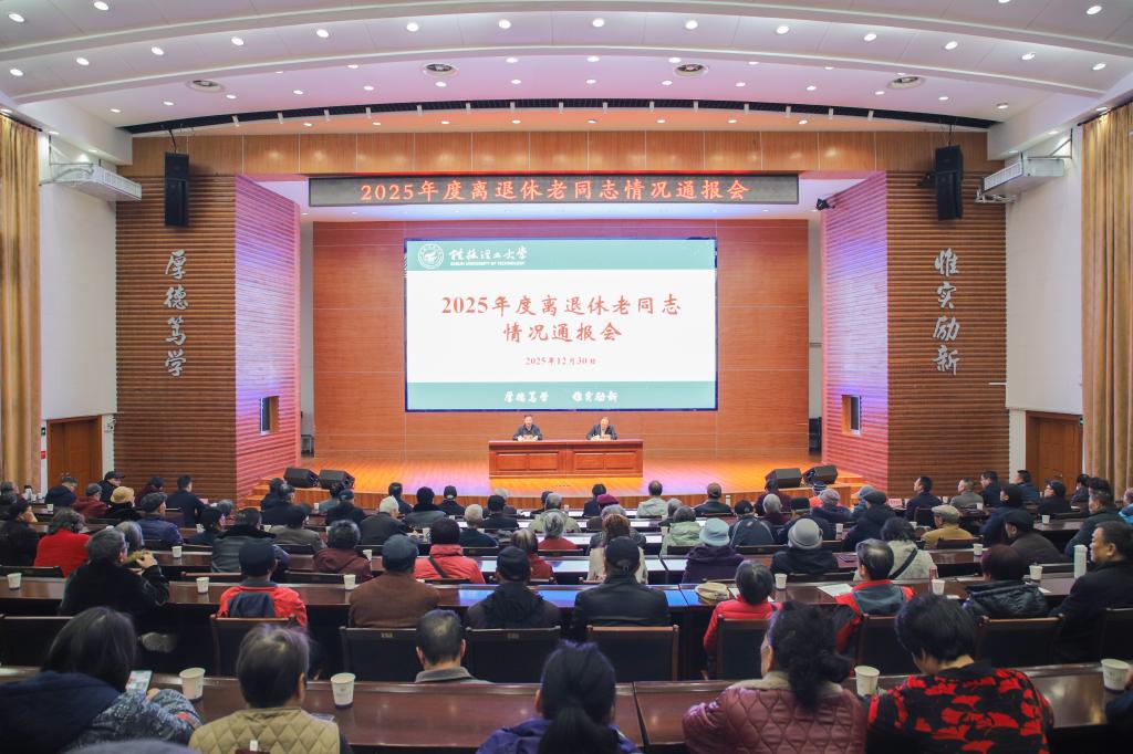 12月30日,学校在屏风校区图书馆报告厅召开2025年度离退休老同志情况通报会,向老同志们致以诚挚问候与崇高敬意,通报学校年度发展成效及未来规划,凝聚“银发力量”共话学校发展。学校党委书记农毅出席会议并讲话。党委常委、副校长唐壮东主持会议。