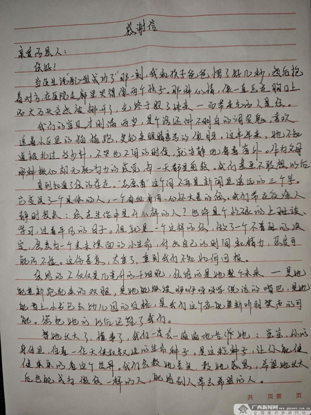来自受助者父母的感谢信
