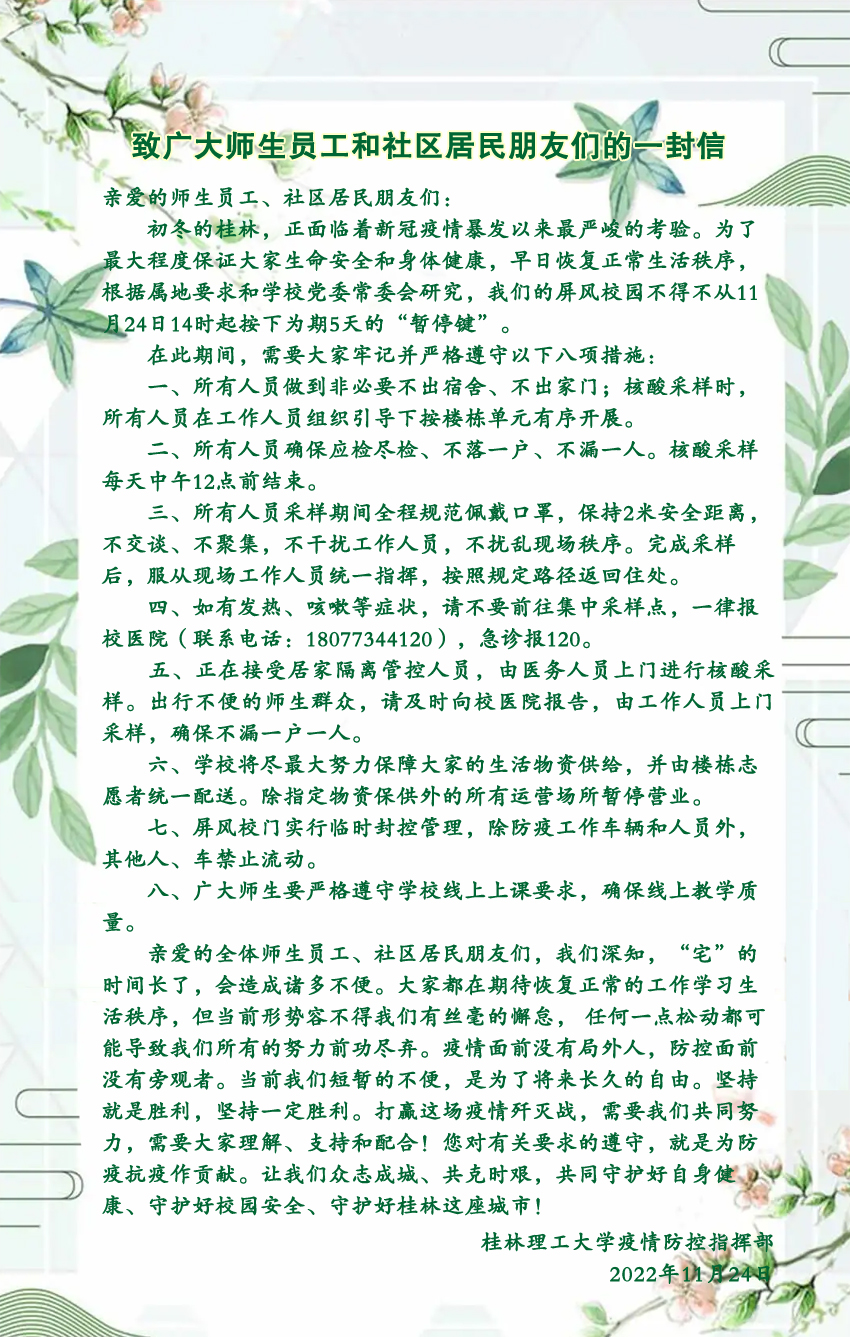 上一条:【防控疫情 桂工在行动】学校召开党委常委会议专题研究部署疫情防控工作和安全稳定工作