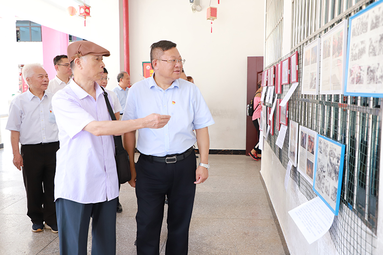 邓军书记一行在灌阳县红军小学参观老同志精心准备的党史国史漫画展