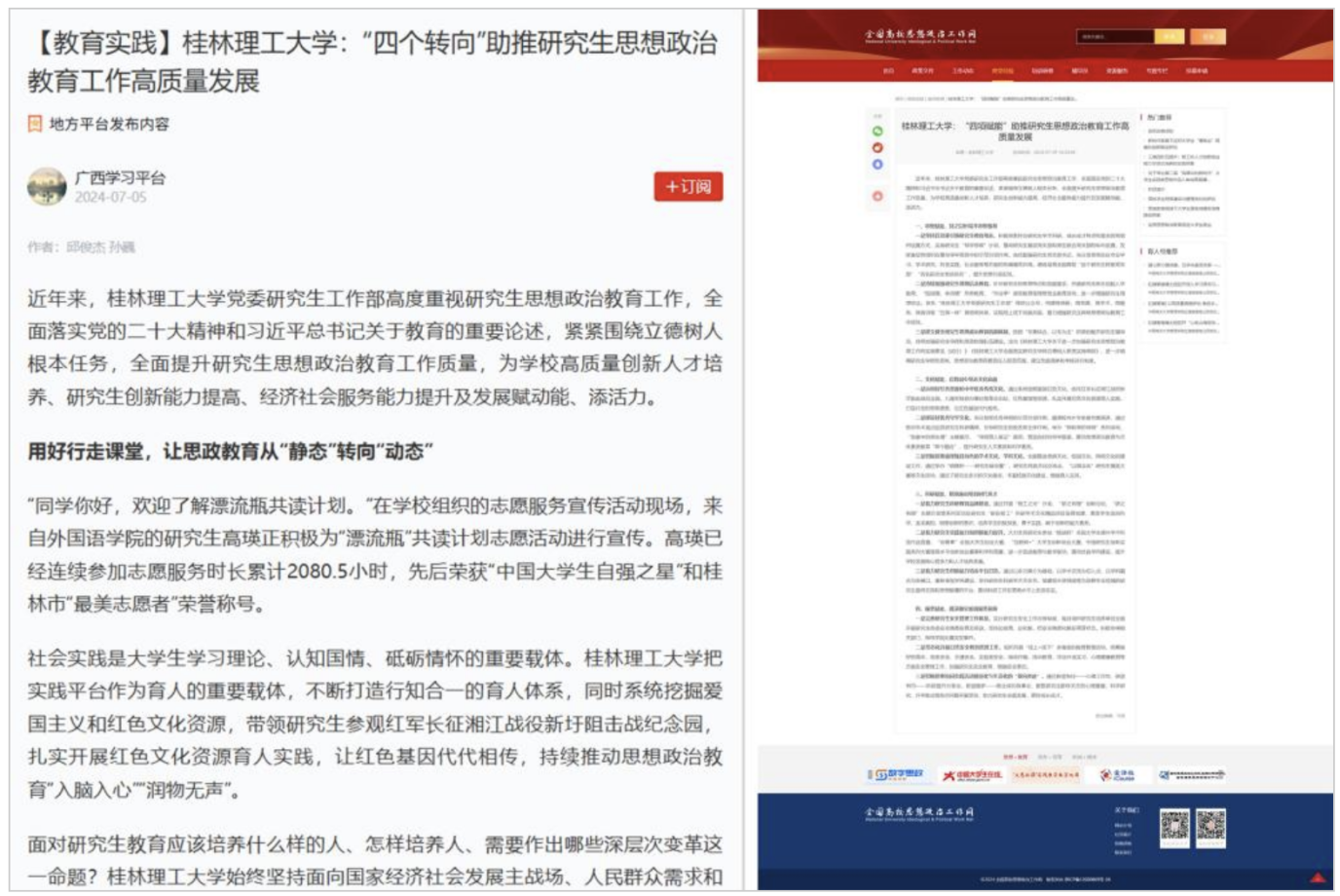 研究生思政工作典型经验获学习强国及全国高校思政网等媒体报道