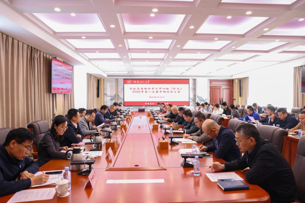 3月31日,学校党委理论学习中心组(扩大)2026年第一次集中理论学习会召开,深入学习领会习近平总书记在全国两会期间的重要讲话精神、习近平总书记关于树立和践行正确政绩观的重要论述。学校党委书记农毅主持中心组学习并讲话。全体在家校领导,校党委理论学习中心组成员参加会议,不是校党委中心组成员的各二级党组织书记列席会议。