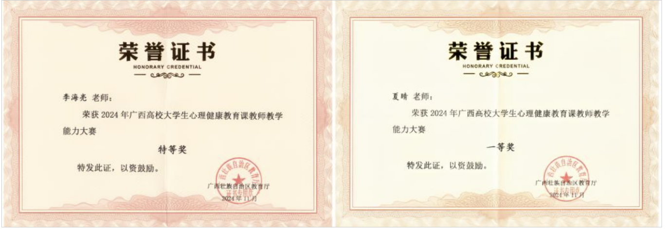 我校教师在广西高校大学生心理健康教育课教师教学能力大赛中斩获佳绩