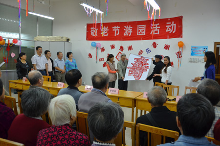 10月23日为我国传统的农历九月九日重阳节,学校离退处组织离退休老同志在老年活动中心欢聚一堂,开展敬老节游园活动。陈贵英副校长及校长助理、人事处处长华桂林,党(校)办副主任唐壮东、校党委组织部副部长白永生等到会祝贺。 陈贵英副校长代表学校向老同志们表达了节日的祝贺,感谢他们长期对学校的关心和支持。莫道桑榆晚,为霞尚满天,她希望全体老同志能继续为桂工的发展发挥余热,最后,她祝全校离退休人员节日愉快,身体健康,阖家幸福,万事如意。 离退休老同志们在游园活动上还表演了二胡合奏《荷塘月色》等文艺节目,剪纸协会还为老同志们送上了大大的“寿”字剪纸。之后老同志兴致勃勃地参加了摸奖、门球进球、投掷气排球等游戏,庆祝自己的节日。 活动开幕式由离退处副处长罗彩云主持,刚刚退休不久的原离退处处长陆娟娟也在开幕式上表达了感激之言。
