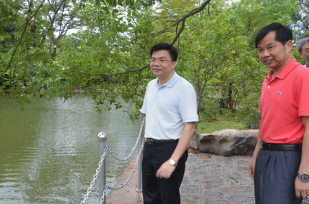 黄雄彪院长在陈学军副校长(右)陪同下实地巡视我校校园环境