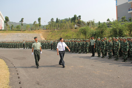 刘宝臣副校长检阅高职学院2012级新生军训连队。
