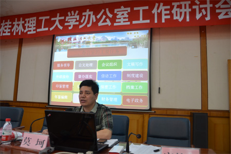 为进一步推动办公室工作的规范化、制度化、科学化、现代化建设,落实“解放思想,赶超跨越”大讨论活动精神,5月12日上午,学校在教八楼会议室召开了办公室工作研讨会。此次研讨会旨在加强办公室工作的研讨交流,切实提高学校和各单位、各部门办公室工作的整体水平,更好的服务学校各项事业发展。学校副校长吴志强,学校党委办公室、校长办公室主任莫坷,校长办公室副主任、校友办公室主任程安福,党委办公室、校长办公室副主任唐壮东,校长办公室副主任董富恒,以及相关工作人员和各单位、各部门办公室负责人参加了会议。会议由董富恒主持。 研讨会上,吴志强副校长首先回顾了学校近年来快速发展过程中办公室工作所起的重要作用和工作人员所付出的辛勤劳动,并代表学校党委和行政对全体办公室工作人员表示衷心的感谢。同时,围绕学校发展大局,结合工作实际,吴志强副校长对全体办公室工作人员提出了四点要求:一是要绝对服从服务学校的发展大局;二是要加强学习,努力提升办公室工作效率和水平;三是要善于创造和谐的氛围,以积极向上的工作态度,团结同事、快乐共事;四是要注重提高个人的综合素质和整体修养。最后,吴志强副校长希望全体办公室工作人员在今后的工作中继续解放思想,赶超跨越,再接再厉,实现办公室工作再上新台阶,为学校做出更大的贡献。 随后,莫珂、程安福、唐壮东依次分别从“办公室的主要职能及履职要求”、“如何做好接待工作”、“公文写作”等三个方面做了精彩的讲座。参会人员认真地学习了讲座内容,积极地开展了交流探讨。研讨会取得了良好的效果和圆满的成功。