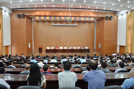 5月9日下午,受上级组织部门委托,学校在图书馆报告厅召开全校中层干部大会。学校党委书记赵艳林,校长张学洪,党委副书记、纪委书记赵君,党委副书记王赣华,副校长陈学军、吴志强,周国清出席会议,全体中层干部参加会议。会议由张学洪校长主持。 赵艳林书记首先宣读了自治区人民政府关于张鹏同志任桂林理工大学正厅级调研员、陈贵英同志(女)任桂林理工大学副校长(试用期一年)、刘宝臣同志任桂林理工大学副校长(试用期一年)的决定,并介绍了这三位同志的相关情况。 随后,新任领导们在发言中感谢上级组织的信任,表示将在学校党委和行政的领导下,充分发挥自己的优势,为学校的发展做出贡献。 最后,赵艳林书记做重要讲话。他对自治区党委和政府对学校领导班子建设的支持和关心表示衷心地感谢,对三位同志的到任表示热烈的欢迎。他指出,近年来我校认真贯彻落实自治区党委和政府的各项政策,取得了较大的成绩。他希望新充实到学校领导班子的同志能够继续努力工作,为桂林理工大学的建设添砖加瓦。同时希望全体中层干部能够更好地支持他们开展工作,为实现建设高水平理工大学的目标做出应有的贡献。
