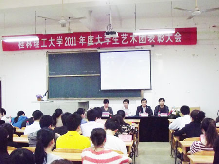 4月22日上午,校大学生艺术团年度总结表彰大会在雁山校区06105教室举行。学校党委副书记王赣华出席总结表彰大会,校院两级团委负责同志以及艺术团师生代表参加了总结表彰会。会议由校团委书记辛立章主持。 会上,与会同志观看了艺术团工作宣传片,校团委副书记、大学生艺术团团长周国桥总结了上一年度艺术团工作,部署了新一年度艺术团的各项工作。校团委副书记白凌婷宣读了大学生艺术团先进个人、先进集体表彰决定,并对获奖集体和个人进行了表彰,获奖学生代表郑梦飞、郭千溪先后发言。 王赣华副书记在表彰大会上作了讲话,他充分肯定了大学生艺术团所取得的成绩,并对进一步加强大学生艺术团建设提出了要求:一是要强化艺术团管理机制,进一步完善大学生艺术团的各项管理制度;二是要立足品牌建设,提升我校艺术教育的水平;三是要进一步加强训练工作的谋划、指导和管理,为训练工作的顺利推进提供保障;四是要完善校、院两级艺术团组织体系,建立艺术团骨干帮扶制度,提升全校艺术团成员的整体水平。最后,他希望艺术团全体团员要严格要求,刻苦训练,进一步提升自身的艺术修养,在学校建设特色鲜明高水平理工大学的事业中做出新的更大的贡献!