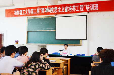 4月22日,学校第二期“青年马克思主义者培养工程”培训班开班仪式在雁山校区06105教室举行。学校党委副书记王赣华出席开班典礼,校院两级团委负责同志以及培训班全体学员参加了开班典礼。典礼由校团委书记辛立章主持。 开班典礼在激昂的《团歌》中开幕,校团委副书记白凌婷就培训班的内容、形式和时间安排作了部署,提出了培训学习要求。土木与建筑工程学院学生会主席樊荣同学代表学员发言,承诺一定会珍惜机会、刻苦学习,不断提升思想素质水平,完善知识结构,提高自身综合素质,努力把自己培养成为优秀的青年马克思主义者。培训班还向每一名学员赠送理论学习读本《2011理论热点面对面——从怎么看到怎么办》。 王赣华副书记在开班典礼上做了重要讲话。他对我校广大团学干部在学校建设和发展中做出的贡献表示肯定,阐述了新时期开展青年马克思主义者培养工程的背景、目的和意义。王副书记还对培训班学员提出了五点要求:一要坚持理论武装,坚定政治立场;二要坚持远大理想,明确人生目标;三要坚持发奋学习,掌握过硬本领;四要坚持躬身实践,不断增长才干;五要坚持修身养德,锤炼优良品格。他希望培训班学员要珍惜机遇,奋发学习,全面完成培训的各项任务,不断提高自己的思想政治素质,努力成为中国特色社会主义的可靠接班人。 开班典礼结束后,王赣华副书记为培训班学员作了题为《学生干部的健康成长与学生组织的科学发展》的专题报告。