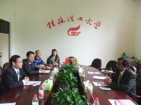 斯里兰卡斯萨巴拉加穆瓦大学校长Mahinda Rupasinghe教授一行3人于2012年4月14日访问了我校。 我校副校长周国清教授会见了Rupasinghe校长一行。宾主双方就两校在教师和学生交换以及科研领域开展合作事宜进行了深入探讨。会后,两校领导签署了合作备忘录。 地球科学学院领导及教师、国际教育学院相关人员参加了会见。