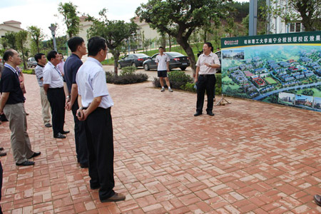 7月4日下午,以自治区人大常委会委员叶茂为组长的第十一届人大代表调研组,在崇左市人大常委会副主任许扬辉、扶绥县人大常委会主任石岗等的陪同下,到我校空港校区考察。副校长刘宝臣代表学校对区人大代表调研组一行到来表示热烈的欢迎,并介绍了我校空港校区建设及高职教育发展等情况。 副校长刘宝臣介绍空港校区一期工程建设基本情况时指出,新校区建设得到自治区政府、教育厅及崇左市的大力支持,建设规模、速度和质量都取得了可喜的成绩。空港校区二期工程也将于下半年开工建设,届时可为做大做强高职教育以及服务地方经济建设提供更优越的硬件设施保障。 调研组一行对空港校区一期工程建设所取得的成绩表示赞赏,并对我校空港校区建设及高职教育发展送上了美好的祝愿。