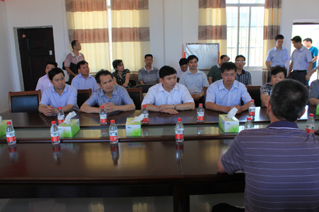 5月9日上午,扶绥县委书记蓝大煌、县长罗彪、县人大常委会主任石岗、县政协主席李桂奇带领县四家班子领导一行20余人来到我校南宁空港校区,并在指挥部会议室召开现场办公会。 南宁空港校区建设指挥部副指挥长劳景寮就校区的建设进展情况向蓝书记、罗县长等领导进行了汇报,重点介绍了因用地指标未落实影响建设进度等困难。蓝大煌书记听取汇报后表示,扶绥县委、县政府以及各相关部门一定会大力支持学校的建设,尽快落实土地问题,保证学校二期工程和教工住宅建设项目顺利推进。