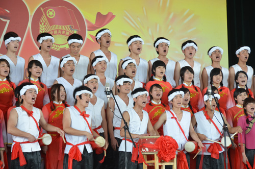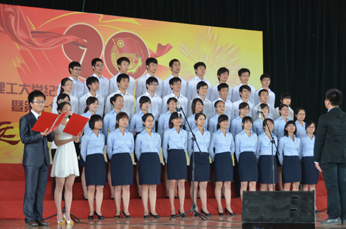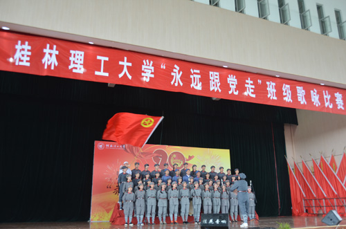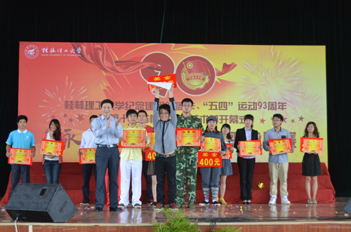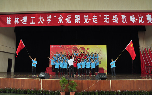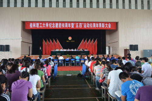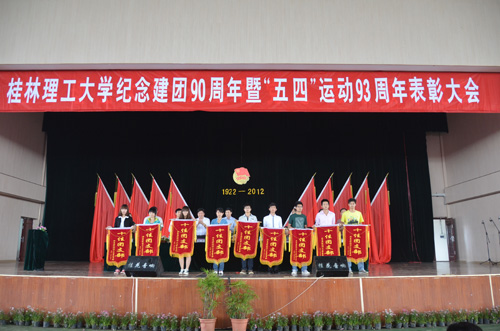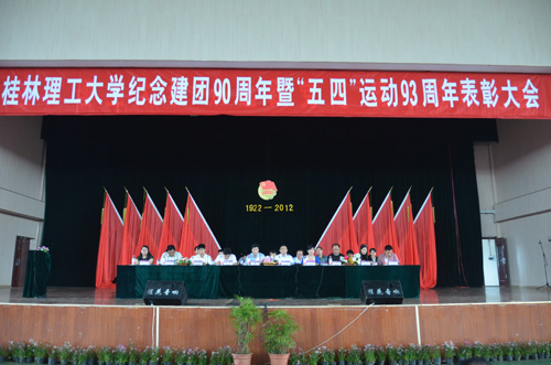 5月6日上午,我校在雁山校区体育训练馆隆重举行纪念建团90周年暨“五四”运动93周年表彰大会、“永远跟党走”班级歌咏比赛。学校党委副书记王赣华出席表彰会、观看了红歌比赛并作讲话。党委学工部,校团委负责人及各学院副书记、团委书记、辅导员参加表彰会或担任比赛评委。校团委书记辛立章主持表彰大会。 表彰大会在雄壮的国歌声中开幕,校团委白凌婷副书记宣读了《关于表彰2011年度共青团“十佳团支部”、“十佳团支书”、“十佳团员”的决定》,校团委周国桥副书记宣读了《关于公布2012年度“五四红旗团支部标兵”创建单位的通知》,在主席台前排就坐的领导为获奖代表颁奖和授旗。“十佳团员”、 “十佳团支书”、 “十佳团支部”学生代表肖丹、施林劼、陈凤斯三位同学分别作了发言。 王赣华副书记在表彰大会回顾了“五四”运动的光辉历史和“五四”精神的时代内涵,强调全校共青团组织、广大团员干部和团员青年要进一步继承弘扬“五四”精神,按照胡锦涛总书记在纪念中国共产主义青年团成立90周年大会上的重要讲话要求,坚持远大理想、坚持刻苦学习、坚持艰苦奋斗、坚持开拓创新、坚持高尚品行、担负起时代赋予的光荣使命。同时,王副书记向全校广大青年学生、共青团干部和共青团组织提出了几点希望:一是希望广大青年学生继承弘扬“五四”精神,坚定永远跟党走的信念,努力成为对社会有用之才;二是希望广大团员干部要切实加强自身建设,增强素质,提升服务能力和水平;三是希望学校共青团组织要求真务实,勇于创新,切实履行好团组织的职能。王副书记指出,青年是国家的未来,是民族的希望,是最富朝气、最富创造性、最富生命力的群体,希望他们能志存高远,脚踏实地,矢志奋斗,不懈进取,为为学校的建设和发展,为伟大祖国、伟大民族更加美好的明天而努力奋斗! 表彰会后,举行了“永远跟党走”班级歌咏比赛,王副书记在开幕式上充分肯定了比赛对校园文化建设的促进作用并预祝活动圆满成功。以“红歌传唱九十年,五四精神代代传” 为主题的歌咏比赛吸引了各学院的积极参与,参赛班级都拿出了自己的看家本领,在比赛唱功的同时,更别出心裁地添加了不少创意,有的以舞伴歌,有的加入了不少手语、手势,有的更是打出不少别有创意的对联和横幅,为比赛增色不少,演出质量也较往年有较大提高。 经过激烈的角逐,艺术学院艺术11-9班荣获一等奖,应用技术学院和理学院获得二等奖,信息科学与工程学院、土木与建筑工程学院 、管理学院分获三等奖,其它学院获得优秀奖。比赛展现了当代大学生的精神风貌,丰富了校园文化生活,更表达了对中国共产主义青年团成立90周年和“五四”运动93周年的深情祝福。