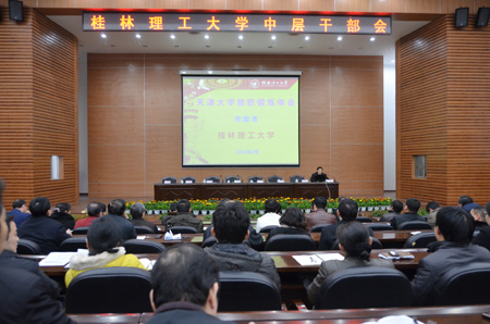 2月23日,我校在图书馆报告厅召开中层干部会议,对2012年新学期工作进行部署,校领导赵艳林、张学洪、赵君、王赣华、肖岳峰、陈学军、吴志强、周国清出席会议,赵君副书记主持会议。 会上,张学洪校长首先传达2012年全区教育工作会议精神。会议对2011年全区教育工作进行了回顾,2011年,全区教育系统深入贯彻落实科学发展观,全面落实教育规划纲要,扎实推进教育改革发展“双十”工程,取得了教育事业科学发展新的成绩。会议提出,2012年全区教育工作的重点,要在“保位”、“控辍”、“扩量”、“提质”八个字上下功夫。会议强调,要更好地把教育优先发展要求落到实处;要更好地促进各级教育协调发展;更好地推进教育基础能力建设;更好地解决人民群众反映强烈的教育热点难点问题;更好地服务广西新发展。随后,赵艳林书记传达了2012年全区高等学校党建工作会议精神和2012年全区教育系统党风廉政建设工作会议精神。 之后,全体与会人员听取了我校周国清副校长在天津大学挂职锻炼的经验与体会。周国清副校长在报告中就其挂职期间的三个适应、三个转变、五多原则、学习方法及工作实际体会进行了系统讲解,并对我校需要学习与改进的方面提出了具体的意见与建议。通过讲座,使我校广大中层干部管理者对研究型、综合性、国际化的高水平大学有了新的理解,对创建高水平理工大学的理念和功能、特色与优势、文化和精神、生命力和和心力有了新的体悟。