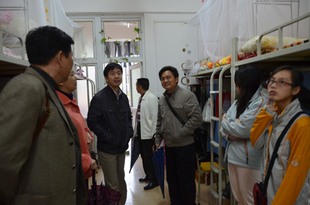 检查宿舍情况并学生交谈