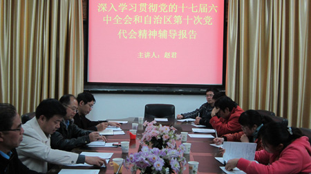 赵君副书记为马克思主义学院作十七届六中全会和自治区第十次党代会学习辅导报告