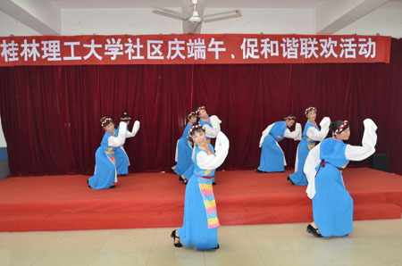 六月夏半,粽米飘香。值中华民族传统佳节端午节来临之际,6月21日下午,学校社区在体育馆附楼活动室举行了“庆端午、促和谐”联欢活动。学校副校长肖岳峰发表讲话并观看了节目演出。 肖岳峰副校长在讲话中代表学校党委、行政,向学校社区全体居民和全校师生员工致以节日的问候和美好的祝愿!他说,端午节是中华民族的传统佳节,举行“庆端午、促和谐”联谊活动,是学校社区这个大家庭庆祝传统佳节的一次大团圆。肖岳峰副校长希望这次活动能够弘扬伟大的爱国主义精神和中华民族的优良传统,激发爱国情怀,充分展示出社区广大居民的良好精神风貌和社区精神文明建设的成果;并希望全校广大师生员工和离退休老同志们,能够继续关心、支持和参与学校的建设和发展,继续关心、支持和参与社区的建设和发展,为构建和谐校园、构建和谐社会做出新的更大贡献。 随后,联欢活动正式开始。社区居民通过独具特色的民族舞、合唱、独唱和乐器演奏等10个节目喜庆端午佳节,憧憬美好未来。诗朗诵《淡水河边悼屈原》,表达了千百年来人们对屈原这位爱国诗人的景仰情怀。一曲柔美婉转的葫芦丝合奏、笛子伴奏《山歌送亲人》《荷塘月色》,令人久久沉浸在悠扬的音乐声中。身着天蓝色藏族服装的女职工们献上的舞蹈《香格里拉》更是将现场气氛推向了高潮。本次联欢活动的举办,丰富了学校社区居民的文化生活,也从一个侧面展示了我校和谐社区、和谐校园建设的成果。