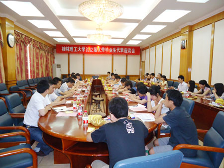 6月20日上午,我校2012届优秀毕业生代表座谈会在屏风校区教八栋三楼会议室召开。学校党委副书记王赣华出席会议,学工部(处)副部(处)长张雷主持会议。参加座谈会的还有保卫处、校团委、教务处、招生就业处、研究生处、图书馆、现教中心、财务处、后勤处、校医院等相关部门负责人。 座谈会上,同学们在愉快的氛围里,首先做了简短的自我介绍。之后,王赣华副书记向获得自治区和学校“优秀毕业生”荣誉称号的同学们表示热烈祝贺,希望同学们在今后的学习工作中,继续发扬“桂工精神”,为母校争光,为社会做贡献。同时,他还真诚鼓励各位同学从自身的学习及生活经历对学校各方面的工作情况提出意见和建议,并据此了解同学们的成长规律,完善学校相关部门的工作。 参加本次优秀毕业生座谈会的同学均是来自考研深造、成功推免研究生、就业创业、西部志愿服务、留校工作等各类优秀学生代表。座谈会上,甘晓红等31名同学结合自身情况积极发言,畅谈自己的成长经历。同时,同学们还围绕日常教学、校园活动、考研指导、学生思想政治教育和日常管理、就业指导服务、后勤服务等方面的工作提出了不少建设性的意见和建议;对于部分同学提出的问题和意见,相关部门负责人当场给出了令同学们满意的解释和答复。 王赣华副书记代表学校党委、行政感谢同学们对学校各项工作提出的中肯建议。希望同学们作为优秀毕业生代表在走向社会后,时刻关心母校的建设与发展,保持与在校老师的沟通与联系。并祝愿同学们在走上工作岗位后更加出类拔萃,继续深造的同学继续发扬榜样作用。 最后,参加座谈会的同学纷纷表达对母校的精心培育的感恩之情,并祝愿母校蒸蒸日上,再创辉煌!
