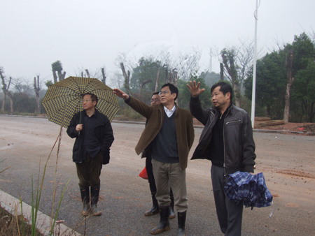 3月11日上午,赵艳林书记在陈学军副校长的陪同下,冒着绵绵春雨视察了我校雁山校区建设施工现场,校办、基建处及雁山校区建设指挥部负责人陪同视察。