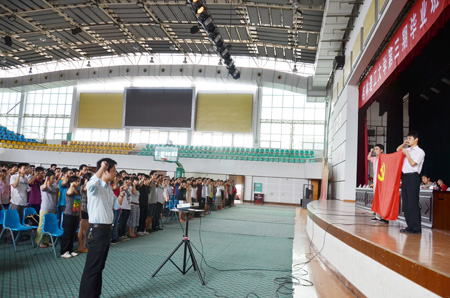 为认真贯彻落实大学生党的知识全程化、全方位教育实施方案,进一步加强我校毕业班学生党员的教育管理,在建党90周年前夕的6月9日上午,我校1000余名2011届毕业生党员在体育馆三楼参加了离校前的最后一次党员培训。 学校党委副书记王赣华出席开班典礼并作了题为《转变角色,勇于担当,在新的征途上做一名优秀共产党员》的首场专题报告。党校校务委员、党委办公室主任、校长办公室主任莫坷,党校校务委员、副教务长、党委学工部部长、学工处处长熊英,党校校务委员、学校团委书记辛立章,党校校务委员、党委组织部副部长白永生以及各二级党校校长、副校长等参加了开班典礼。开班典礼由学校党委组织部部长、党委党校副校长兼教务长陈贵英主持。 王副书记在报告中强调,大家还有不到半个月的时间即将顺利完成大学阶段的学习,将奔赴新的工作岗位或进一步的深造,在面向人生新的里程之前,希望全体党员同学尽快转变角色,做好“四个担当”:对党、对国家、对社会的责任要有所担当;对工作单位的责任要有所担当;对亲人家庭的责任要有所担当;要传承和发扬桂工精神,对母校发展和维护母校形象有所担当。王副书记还提到,党员同学在做好自己人生角色换转的同时,坚持党性修养不能变,要加强自主学习,永葆党员先进性,在新的征途上做一名优秀共产党员。 之后,白永生副部长作了《如何办理转移党组织关系手续》的专题报告,对毕业学生党员的组织关系办理流程及注意事项进行了详细介绍。 本次培训还将开展“感恩母校,祝福母校”主题实践活动,学员将结合自己学习成长经历和学校建设发展情况,撰写“我为母校发展建言献策”材料。各二级学院也会根据本学院实际情况开展“重温一遍入党誓词、重温一遍党章、上一堂特殊的党课、过一次特殊的组织生活、交一次特殊党费”的“五个一”教育活动,以增强毕业班党员的党性修养和感恩意识。