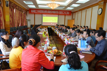 5月24日,以广西师范大学党委唐仁郭副书记为组长的自治区高校工委、教育厅督查组一行四人到我校检查指导思想政治理论课建设和辅导员队伍建设情况。自治区高校工委宣传部部长、自治区教育厅思政处处长唐春生同时莅临我校指导工作。学校党委书记赵艳林,党委副书记、纪委书记赵君,党委副书记王赣华,党(校)办、人事处、宣传部、学工部、马克思主义学院、教务处、财务处、研究生处、团委等相关负责人及各学院副书记、辅导员参加了督察汇报会。 督查组一行首先随机听一堂《毛泽东思想和中国特色社会主义理论体系概论》后,来到学校教八楼会议室,受到了赵艳林书记、赵君副书记、王赣华副书记等的热烈欢迎,赵艳林书记向督导组介绍了我校思想政治理论课建设领导小组设置、马克思主义学院成立、思政课课程建设、辅导员队伍建设等总体情况。赵君副书记作了关于我校思想政治理论课建设情况的汇报,王赣华副书作了关于我校辅导员队伍建设情况的汇报。 汇报会后,督查组分别召开教师座谈会和学生座谈会,走访了我校学工处、团委和马克思主义学院等相关部门,查阅了思想政治理论课建设和辅导员队伍建设情况的相关制度、文件资料,核实了有关数据。 意见反馈会上,督查组专家认为学校党政领导高度重视,组织保障有力,体制健全、制度完善;管理规范,注重教学教改,课程建设突出,有一批良好的教学队伍;学科建设成效显著,思政学科不断上新台阶;辅导员队伍思路清晰,制度完善,措施得力,队伍有充足配备、工作有展示舞台、评价有规范程序、待遇有政策保障、发展有制度支撑。督查组还对我校思想政治理论课建设和辅导员队伍建设工作中有关思政专业课师资队伍相对偏少、博士学位人数相对较低、辅导员队伍学历层次需进一步提升等所存在的问题提出了十分中肯的意见和建议。 唐春生部长也对我校督查情况及下一步工作的重点提出了指导意见:高度重视,成效显著;认真整改,迎接抽评;以督促建,再上台阶。 赵君副书记、王赣华副书记表示,学校将认落实专家组的意见和建议,提高我校的思想政治理论课建设和辅导员队伍建设水平。 自治区高校工委、教育厅组织开展此次督查工作,旨在全面落实教育部《高等学校思想政治理论课建设标准(暂行)》、《普通高等学校辅导员队伍建设规定》文件精神,提高我区高校思政理论课建设和辅导员队伍建设水平。